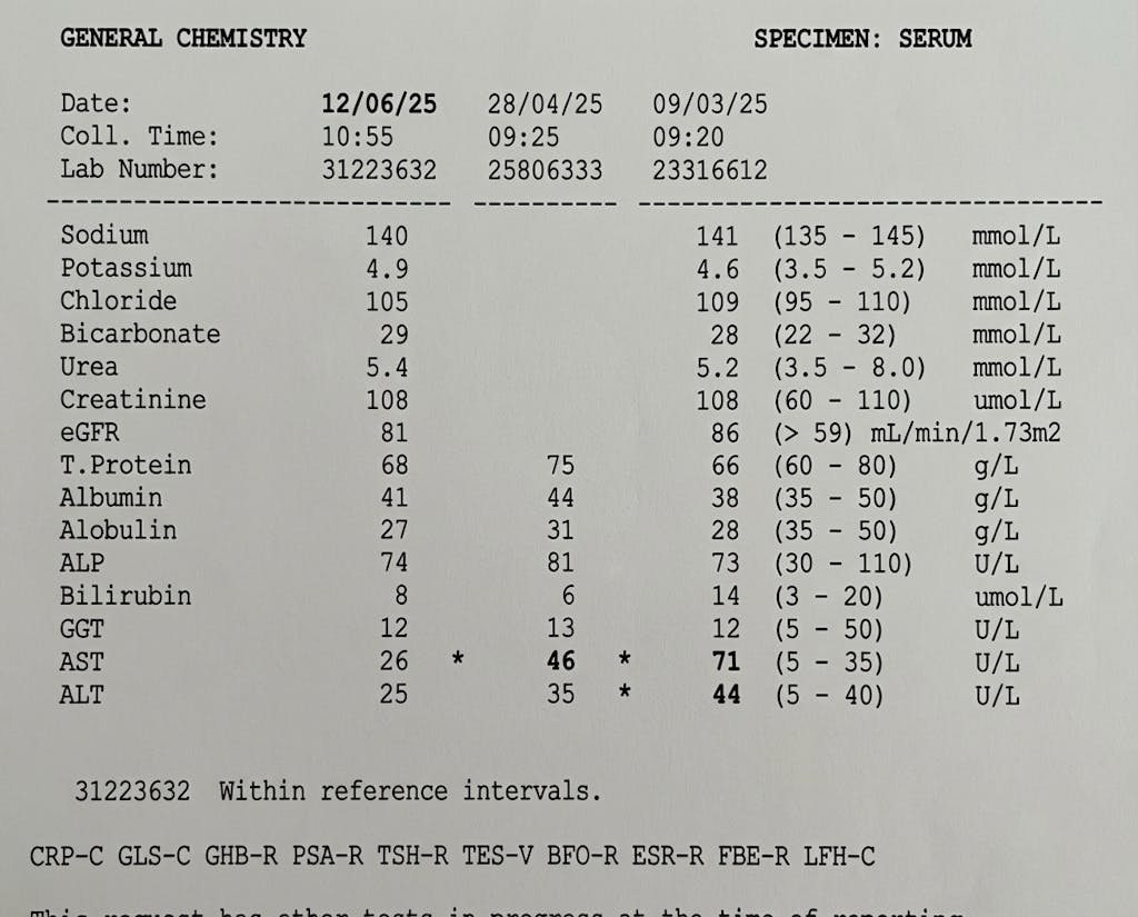 After a bodybuilding comp, my liver enzymes were completely shot. My ALT was sitting at 150 U/L. After just 30 days on the Ultimate Liver Support, it dropped to 35 U/L — right back into the healthy range. Genuinely impressed with the results.